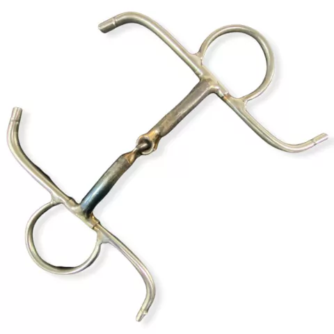 Bridão S de Inox fabricado em aço inox de altissima qualidade, livre de ferrugens. Bocal banhado em ferro e hastes de sustentação articuladas, em aço inox. Produto resistente, prático e de fácil fixação no animal. Produto versátil, podendo ser utilizado na maioria das raças.