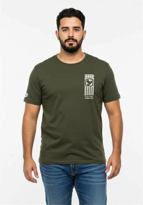 - > CAMISA MASCULINA THANKFIELD VD MILITAR SILKADA LOGO FRONTAL