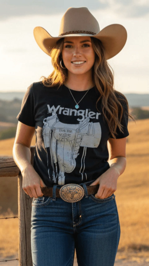 Seu design moderno e versátil permite combinações com jeans, shorts, saias e acessórios, sendo perfeita para eventos casuais, festas, rodeios e cavalgadas. Uma camiseta que une moda urbana e tradição western em um só look.